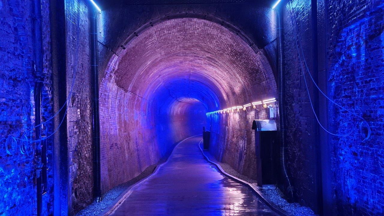 Имали смо ретку прилику да снимимо рад огромне Теслинe намотке, истражимо велики тунел на -6. спрату и изађемо кроз њега до самих ногу водопада.